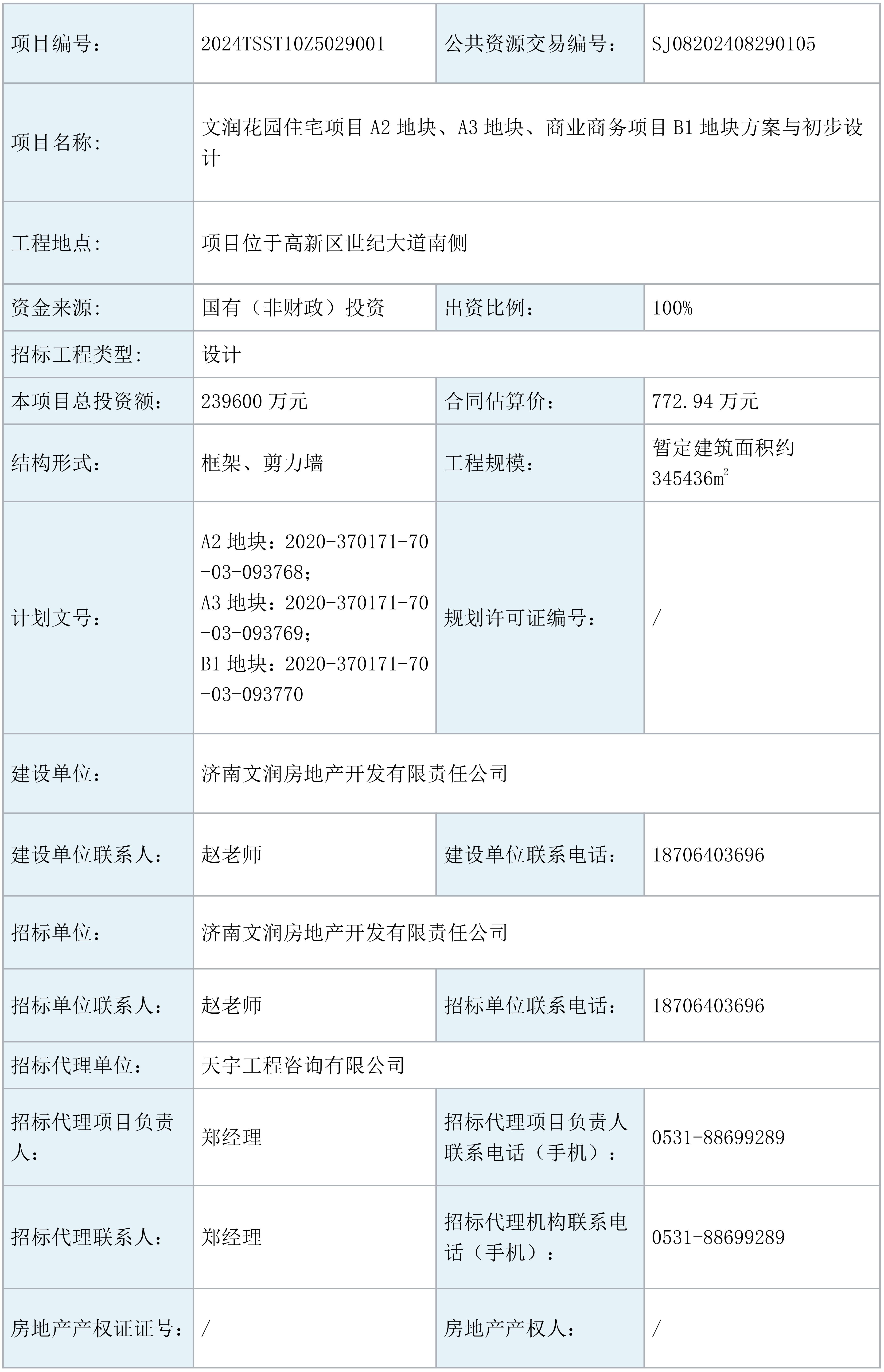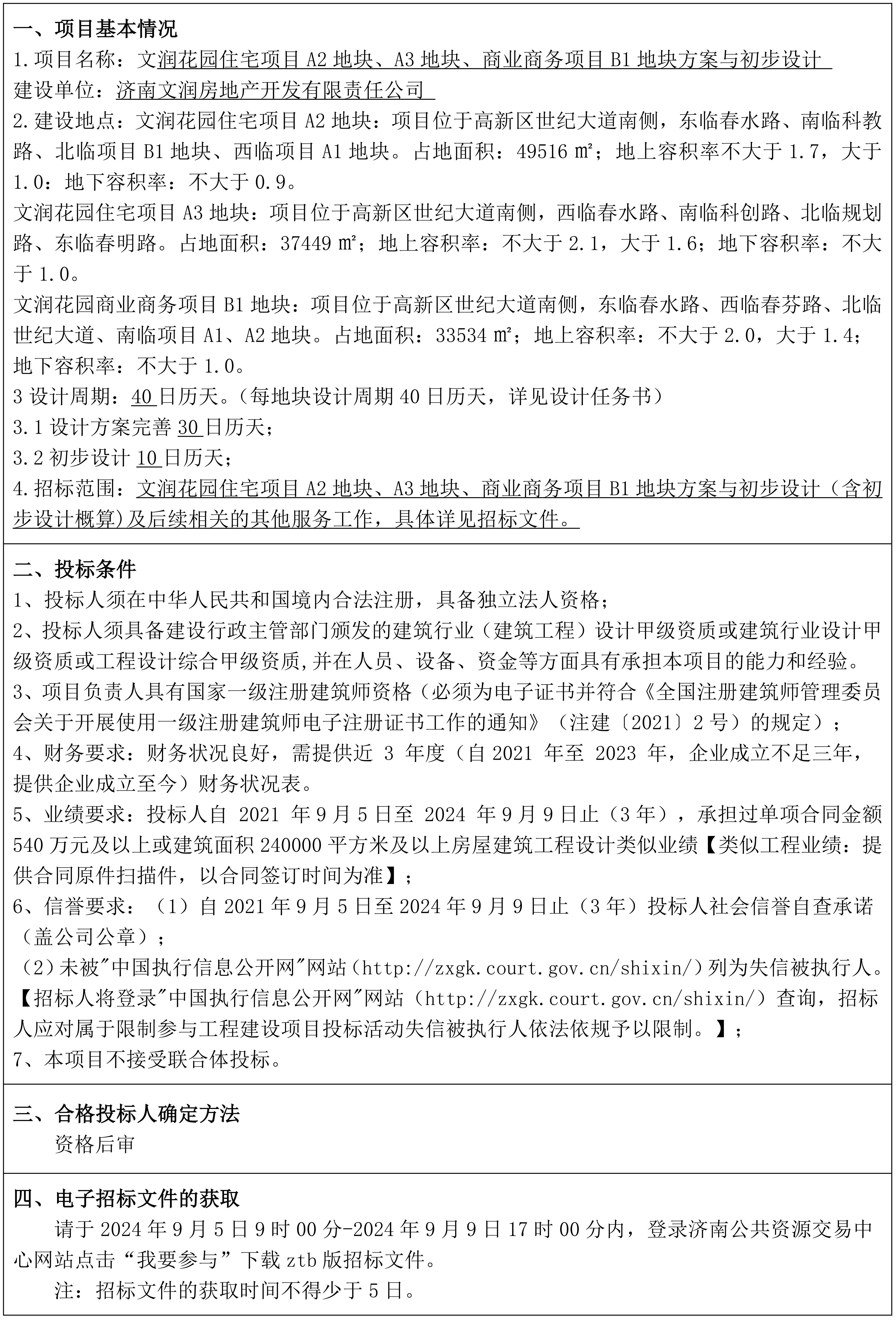 文潤花園住宅項(xiàng)目A2地塊、A3地塊、商業(yè)商務(wù)項(xiàng)目B1地塊方案與初步設(shè)計(jì)招標(biāo)公告