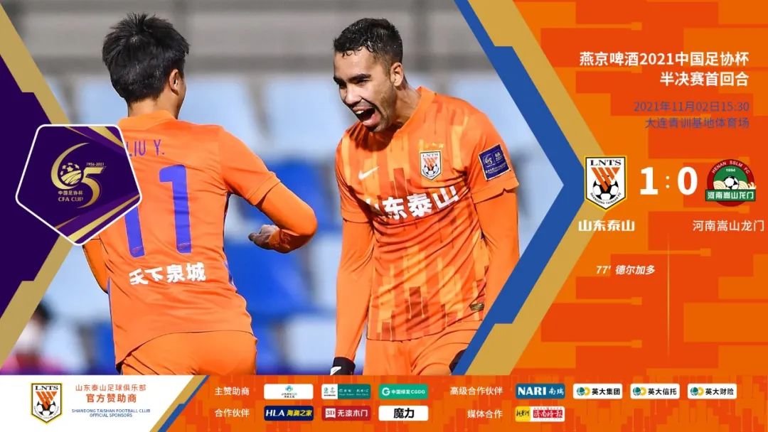 11月2日15:30,山東泰山與河南嵩山龍門的足協杯半決賽首回合交鋒打響。憑借德爾加多的進球,泰山隊1比0擊敗對手。賽前,雙方公布了各自的首