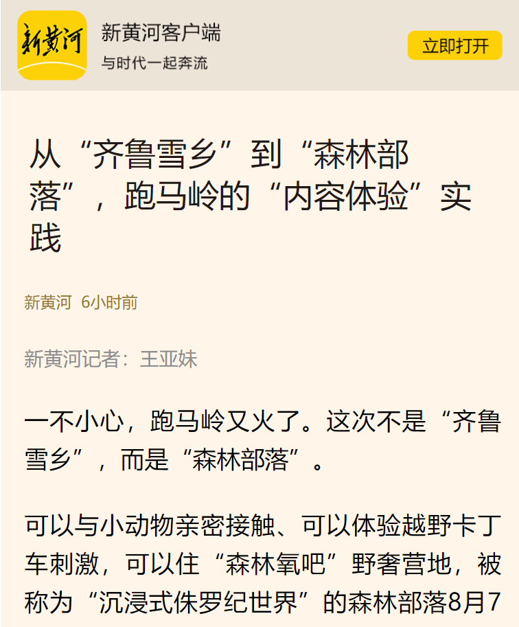媒體聚焦|從“齊魯雪鄉”到“森林部落”,跑馬嶺的“內容體驗”實踐