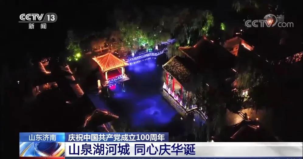 6月26日晚,中央電視臺新聞頻道《東方時空》以近6分鐘的時間,對濟南主題燈光秀“山泉湖河城 同心慶華誕”進行了直播。在為全國觀眾展示泉城絢麗夜景的同時,直播畫面還充分展現了近年來濟南落實黃河流域生態保護和高質量發展重大國家戰略,在生態保護、交通、民生、營商環境等方面高質量發展的成果。央視直播“飛閱”泉城夜景為慶祝中國共產黨成立100周年,濟南從全國廣泛征集燈光秀創意作品,以一場璀璨的光影盛宴,點亮